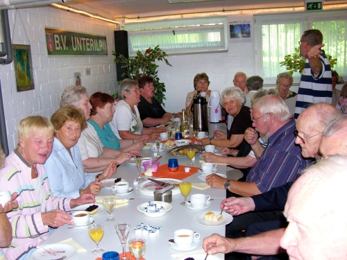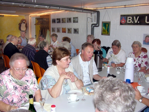 die Gruppe 60+ im Bürgerraum. Bei Kaffee und Kuchen wird