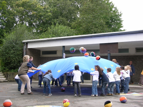 präsentierte sich in der Turnhalle. Auf dem Bolzplatz gab es