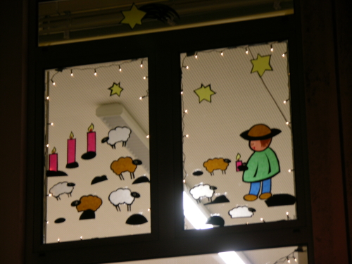 festlich gestalteten Fenster der Gottesdienst fortgeführt