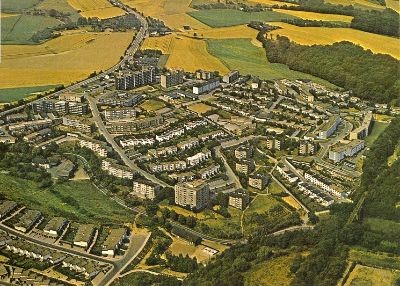 Blick zur Unterilp, links Moselstr. 40 und Häuser am Erftweg, Brückenbaustelle